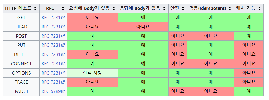 - OPTIONS: 대상 리소스에 대한 통신 가능 옵션(메서드)을 설명(주로 CORS에서 사용)