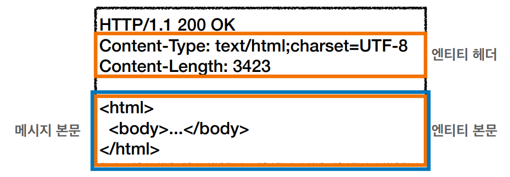- 메시지 본문(message body)은 엔티티 본문(entity body)을 전달하는데 사용